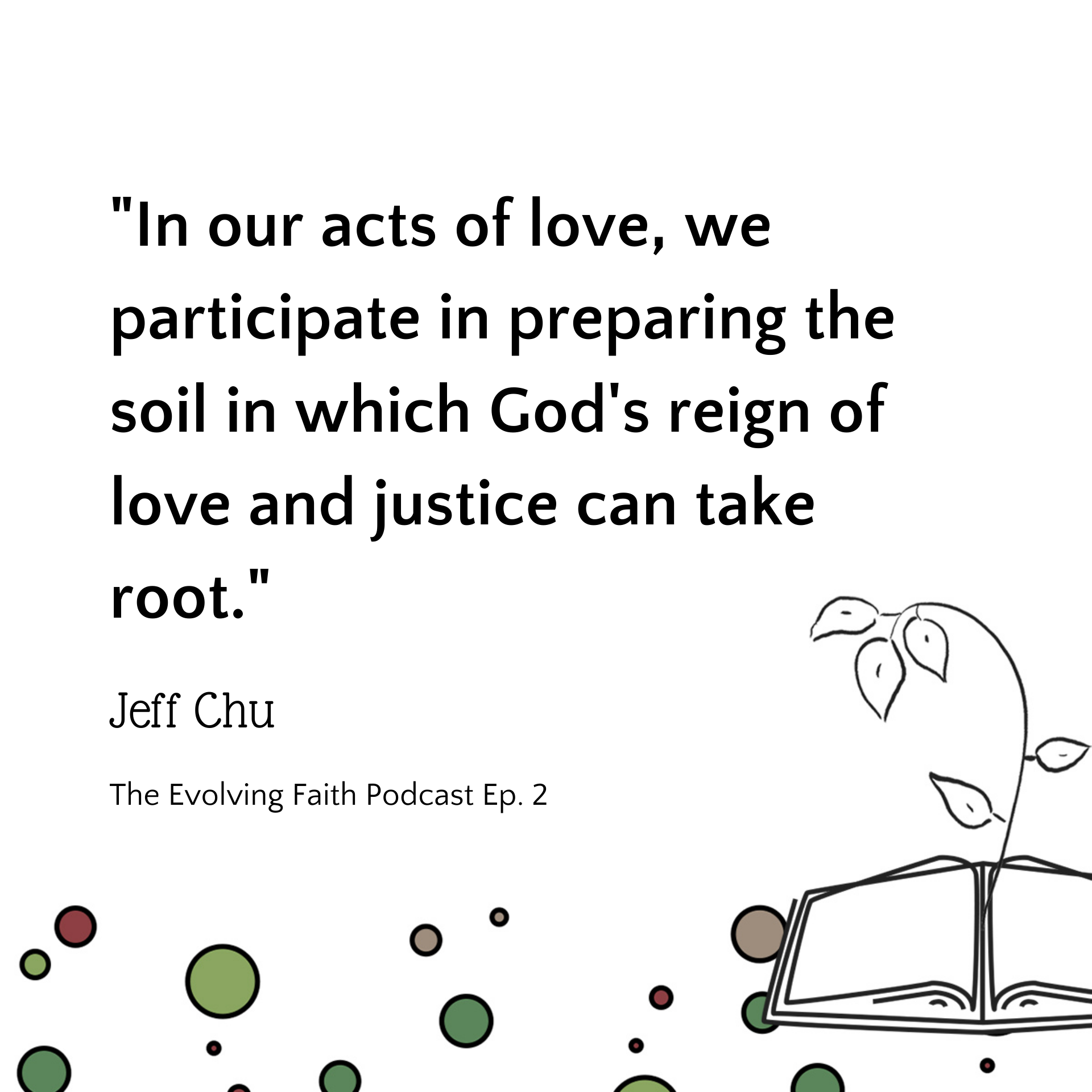 Jeff: Thanks, friends, for listening to this episode of the Evolving Faith Podcast. If you want to keep up with what I'm doing, I recently started a free newsletter where I am annoyingly earnest. You can read it at jeffchu.substack.com. The audio version of my book, Does Jesus Really Love Me?, came out not too long ago. And you can hear me do really bad Southern accents in that book. The print version is still available everywhere good books are sold, if fake Southern accents offend you. Ask at your local independent bookseller and they'll be able to get it for you. You can follow us on Twitter and Instagram at @evolvfaith. You can also find me on Twitter at @jeffchu, and on Instagram at @byjeffchu.